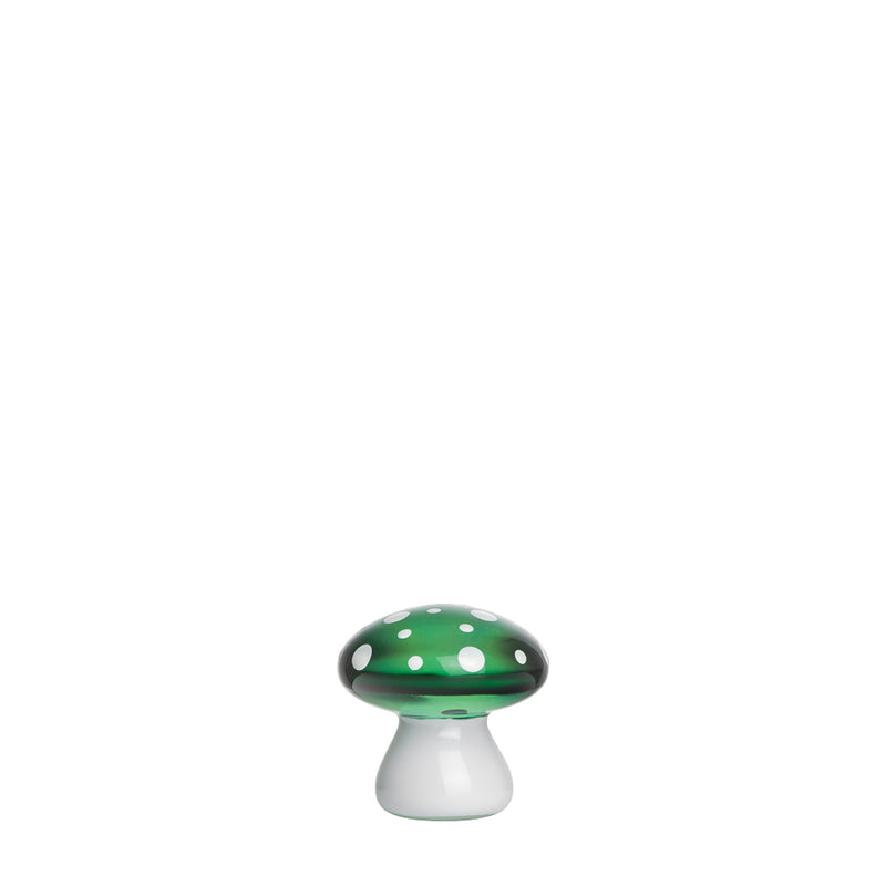 Den minste fluesoppen i grønn på 3,5 cm er en delikat og sjarmerende dekorasjon fra Hadeland Glassverk. Inspirert av skandinavisk natur, tilfører denne lille fluesoppen et friskt og naturlig element til juledekorasjonen. Den grønne fargen gir en moderne vri på den klassiske fluesoppfiguren. Perfekt å kombinere med Dompap, Nisse og Gran for en helhetlig juleopplevelse. Tørkes forsiktig med en fuktig klut.
