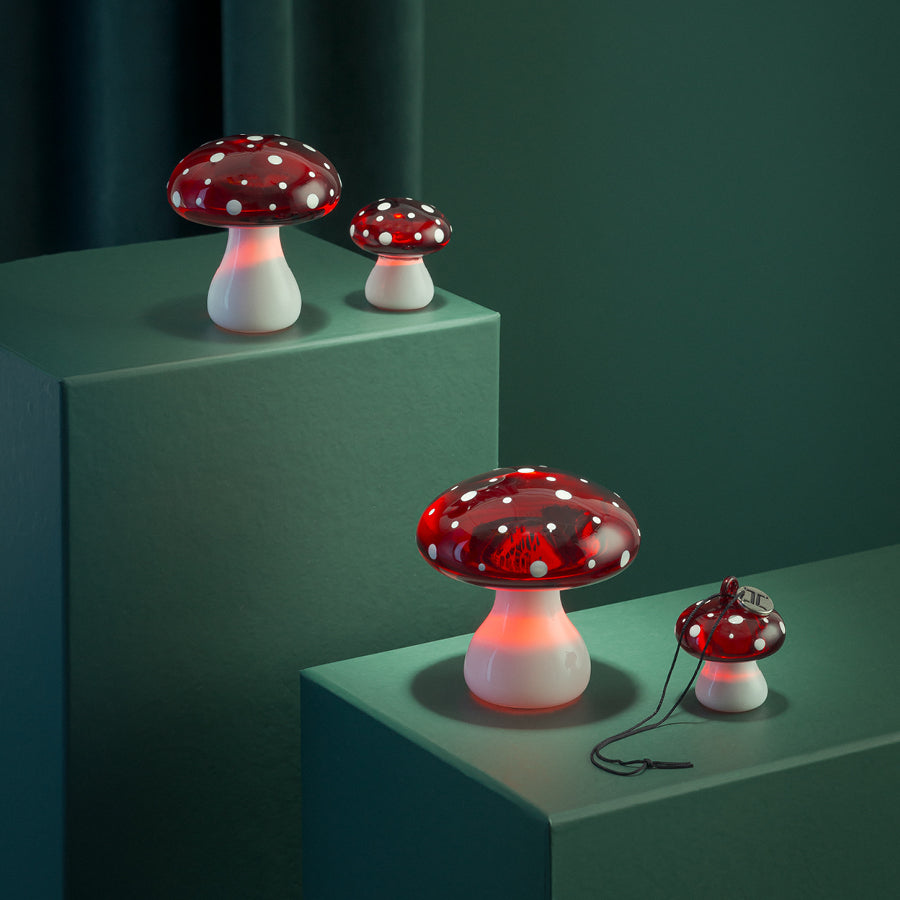 Fluesopp Rød 6,2 cm er en sjarmerende liten dekorasjon inspirert av norsk skog og folketro. Den klassiske røde fargen og kjente formen gjør denne fluesoppen til en favoritt blant julepynt fra Hadeland Glassverk. Plasser den sammen med Dompap, Nisse eller Gran for en harmonisk og eventyrlig juledekorasjon. Enkelt vedlikehold ved å tørke med en fuktig klut.