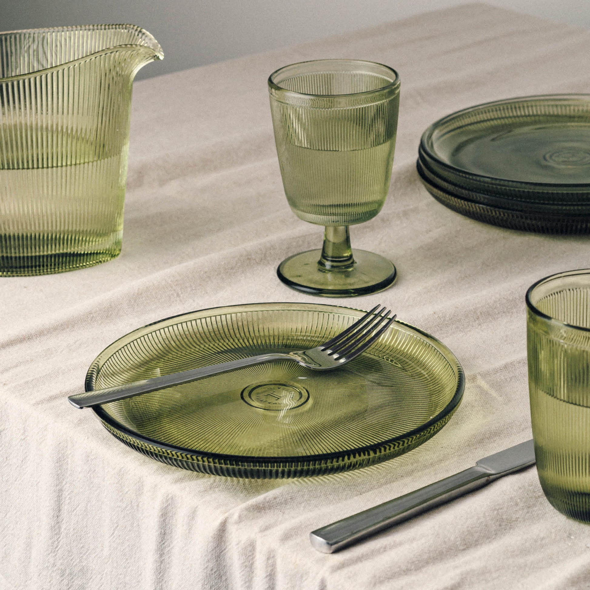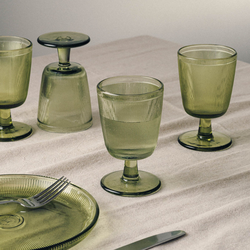 Siri glass med stett i grønn kombinerer eleganse og funksjonalitet. De ikoniske rillene gir et tidløst uttrykk. Leveres i 4 pk.