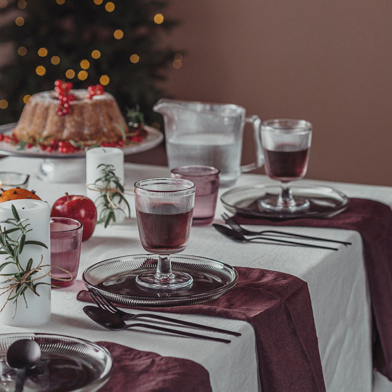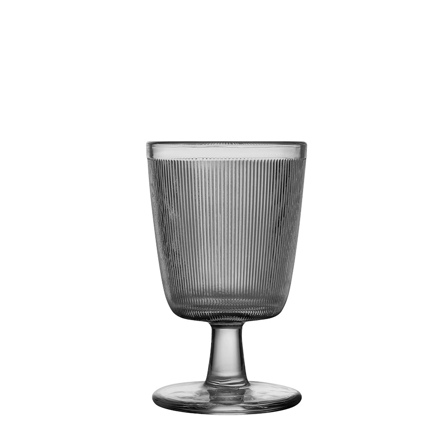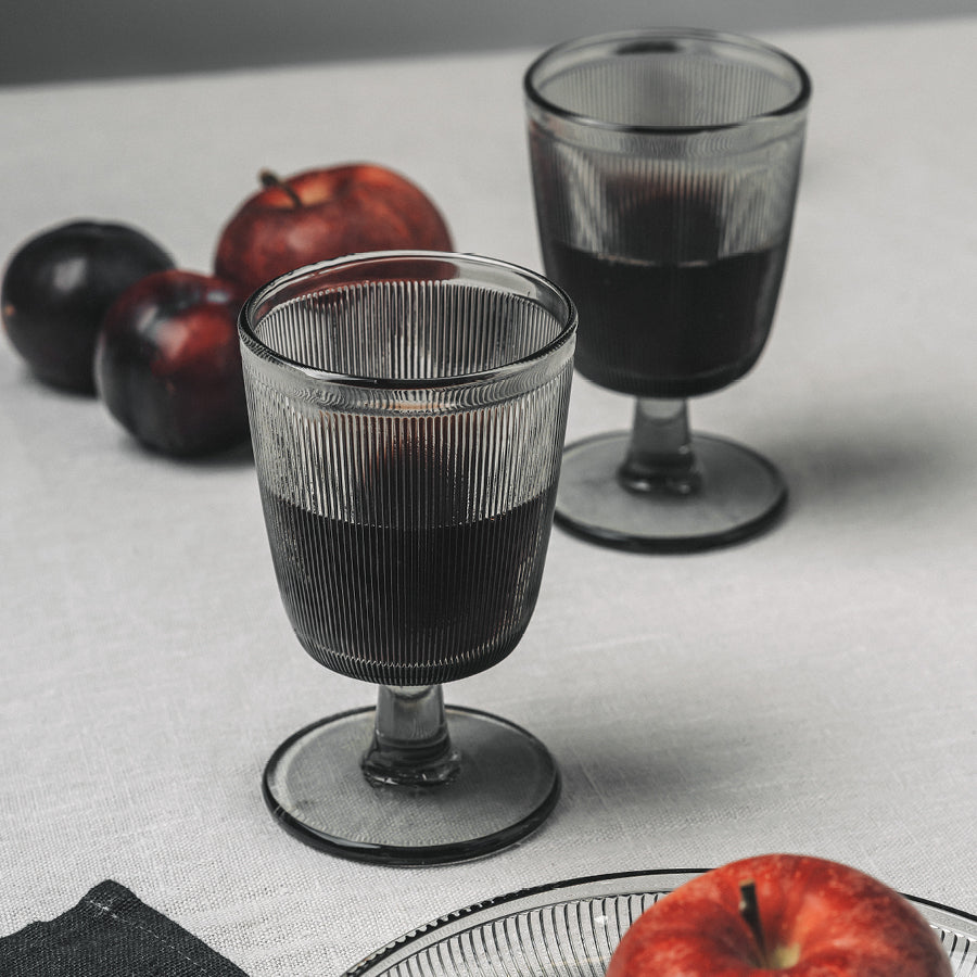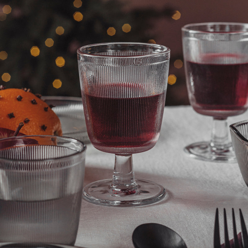 Stilrent glass med stett og dekorativt rillemønster, perfekt til alle typer drikke. Flotte til festbordet. Rommer 25 cl drikke.
