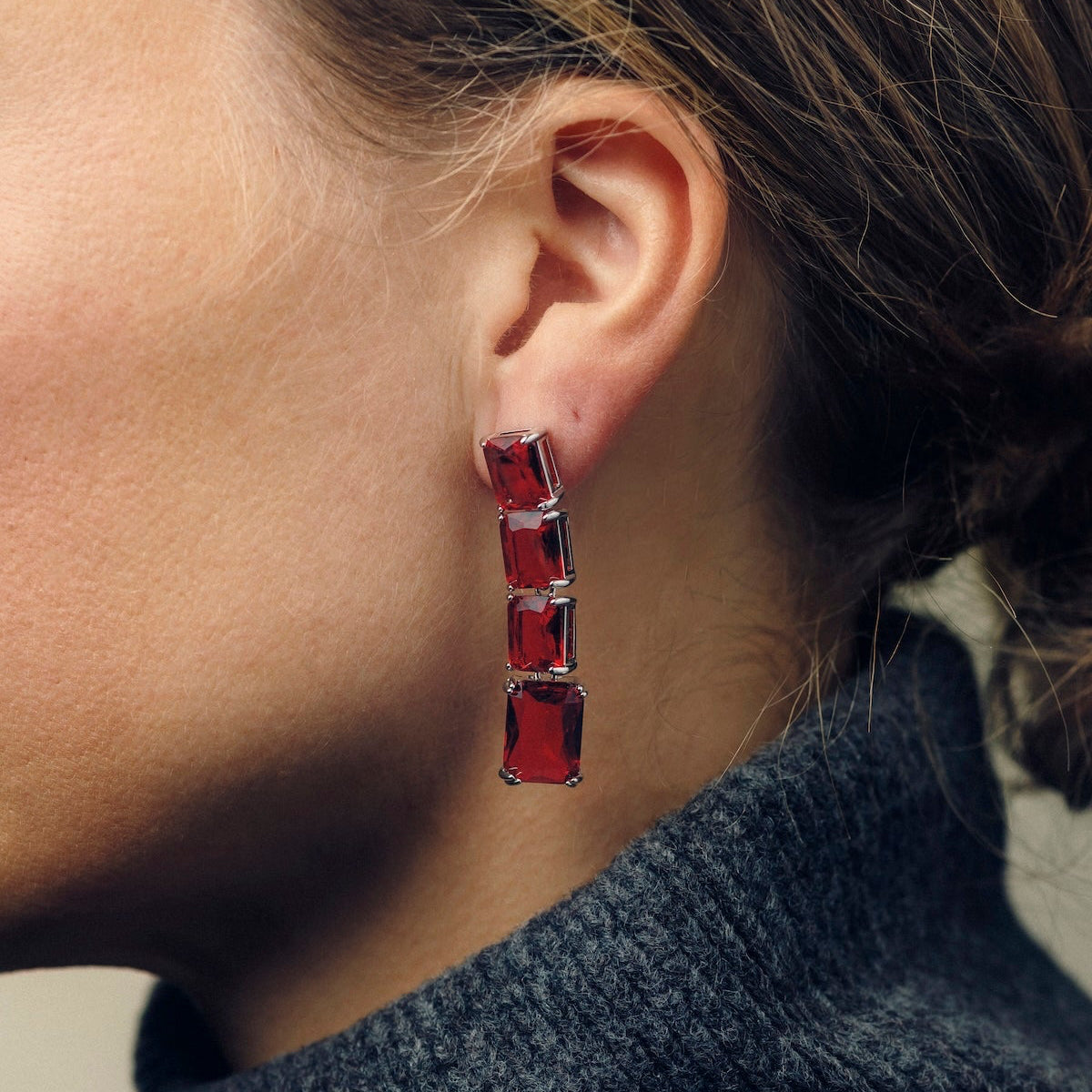 GLØR ørepynt stor er et markant statement-smykke med ekstra store glassteiner som gir maksimal glans og en kraftfull refleksjon. De presise rektangulære formene møter 18K gullbelagte detaljer i et uttrykk som er luksuriøst, skarpt og selvsikkert. Perfekt for deg som ønsker et smykke som virkelig gløder.
