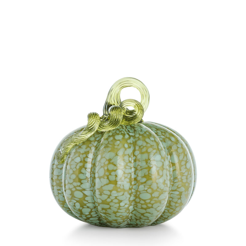 Et munnblåst gresskar i blågrønn farge, med karakteristisk stilk. Hvert gresskar er unikt og gir moderne eleganse til rommet.