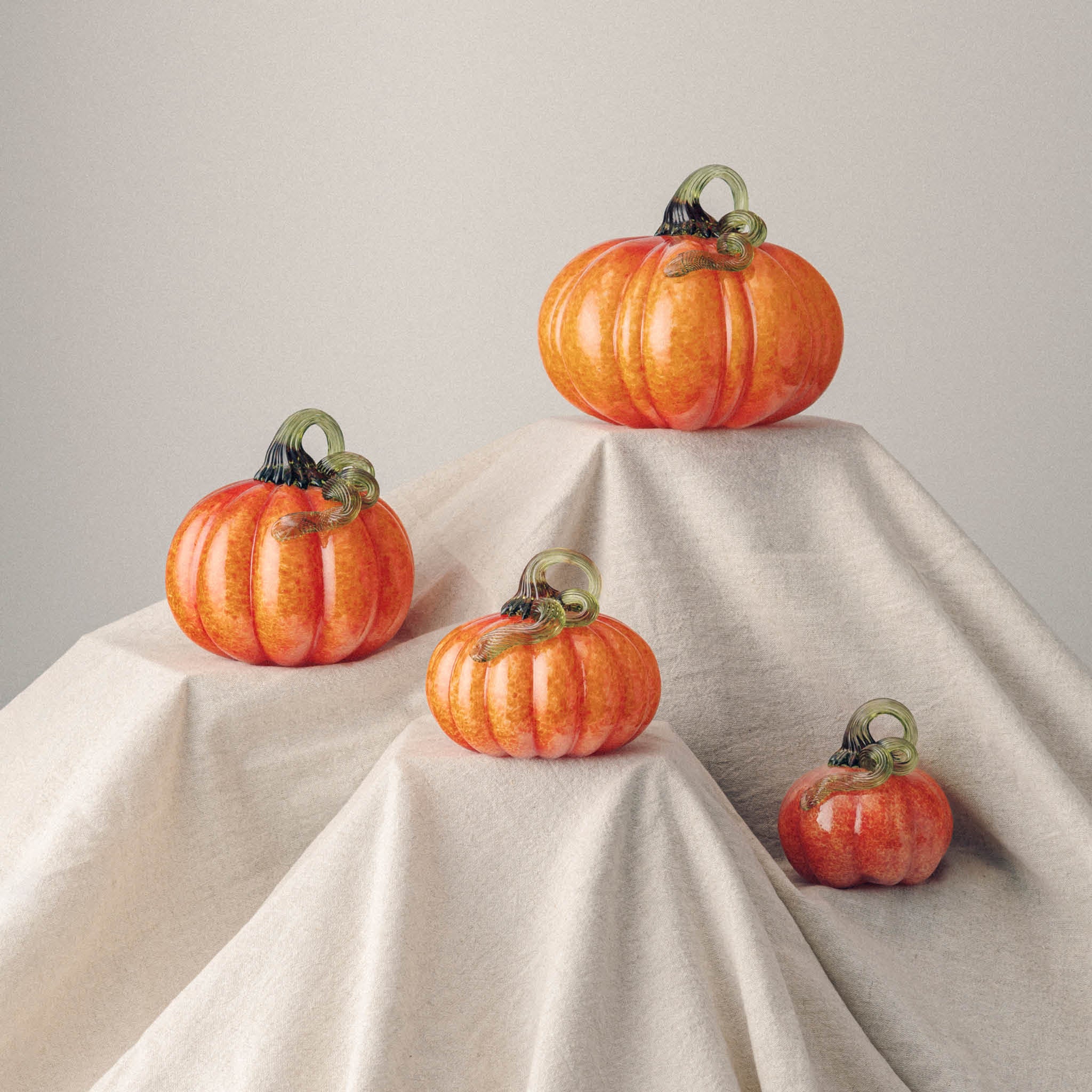 Lite munnblåst gresskar i varm oransje farge med grønn stilk. Hvert gresskar er unikt og gir et lekent preg til interiøret.