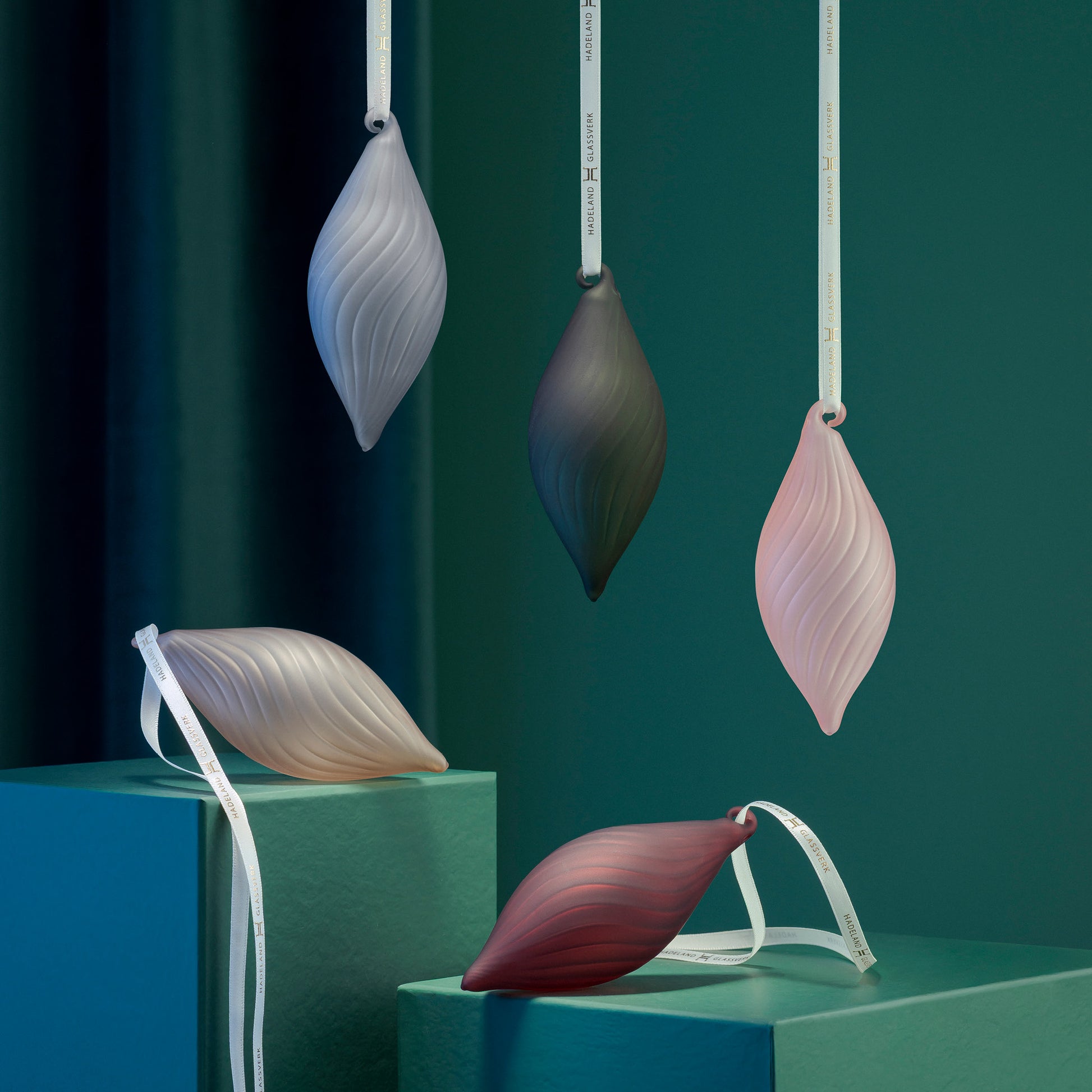 Gyllenklang Twist Frostet 5 pk fra Hadeland Glassverk er en moderne tolkning av den klassiske julekula. De tvistede formene og frostede overflatene gir et mykt og eksklusivt uttrykk. Serien kombinerer dempede vintertoner med et elegant lysspill – perfekt både på juletreet og i vinduet.