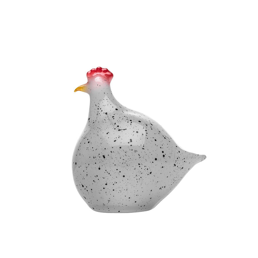 Den omsorgsfulle hønen er et kjært innslag i påskepynten. Denne munnblåste glassfiguren har en myk grå tone med delikate gullspett som gir et levende og eksklusivt uttrykk. Hver høne er unik, formet for hånd og preget av det ekte håndverket. Designet av Maud Gjeruldsen Bugge – tidløst, varmt og fullt av personlighet.