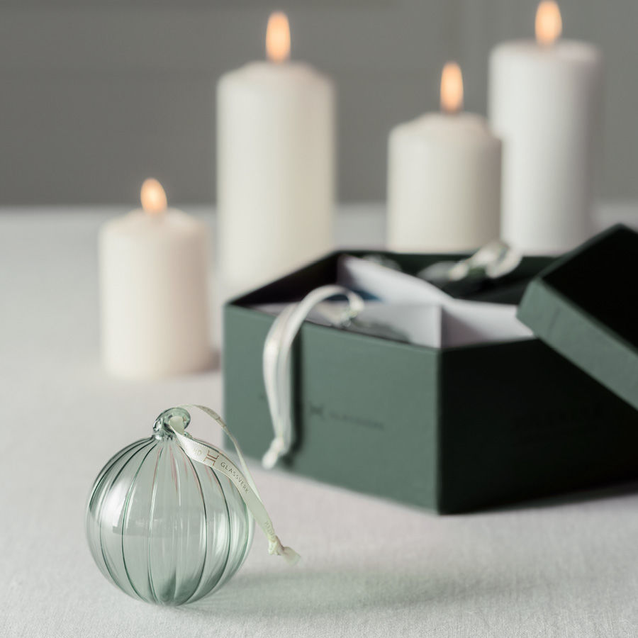 Julekulene fra Hadeland Glassverk er inspirert av de skandinaviske designtradisjonene, og Hadelands historiske glassproduksjon.