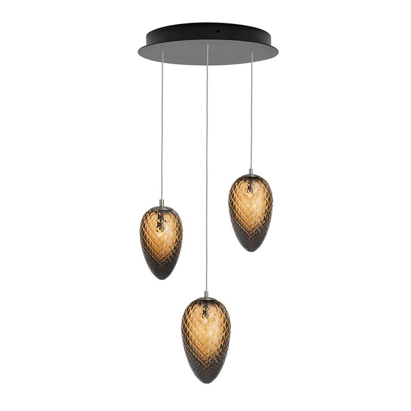 Inneholder 3 munnblåste kongler i nydelig kakao farge, i størrelsene 17cm, 21cm og 23cm.