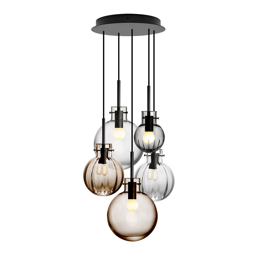 - Sort oppheng til 5 krystallkuler med sort, tekstiltrukket kabel på 3 meter