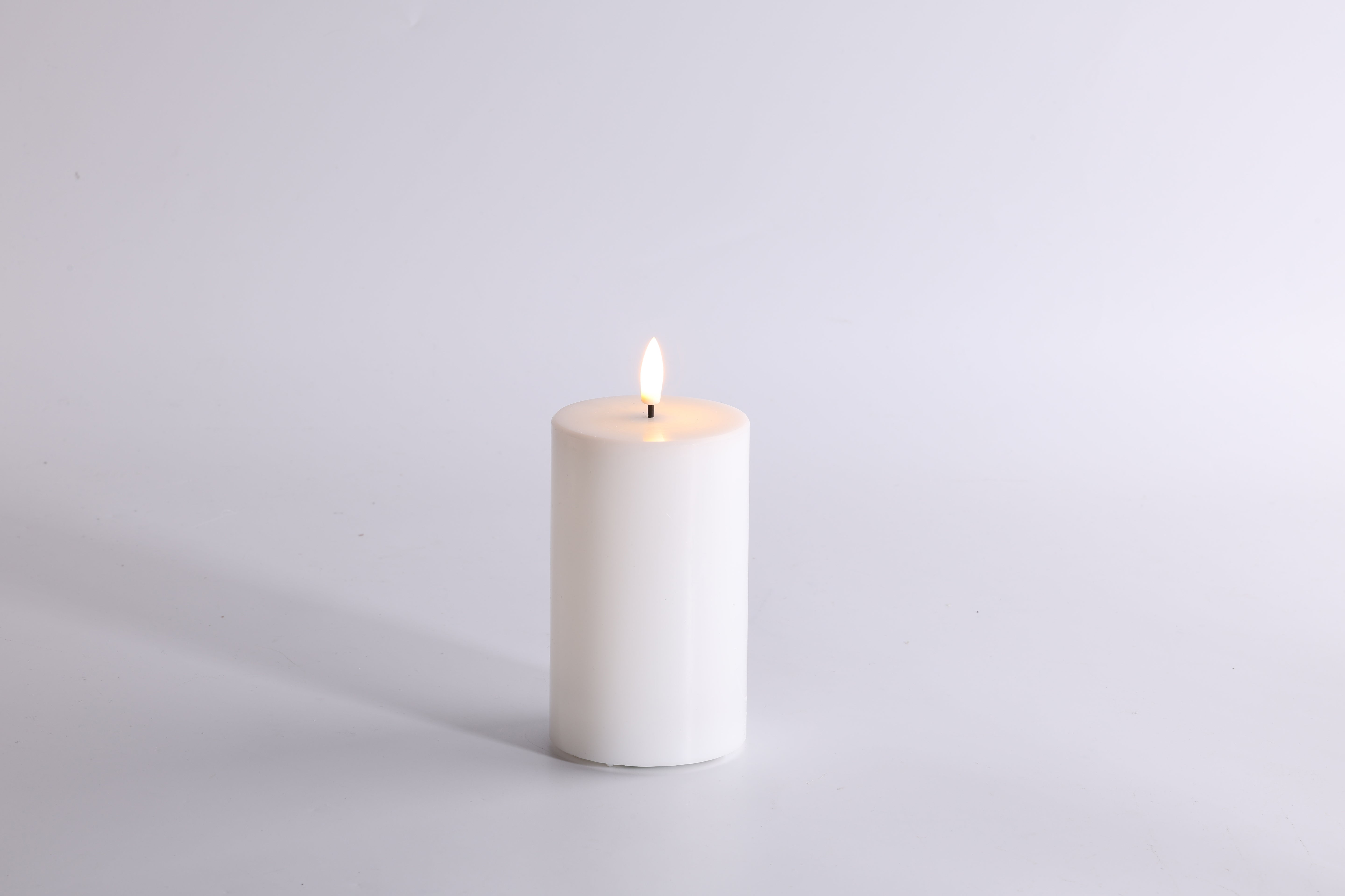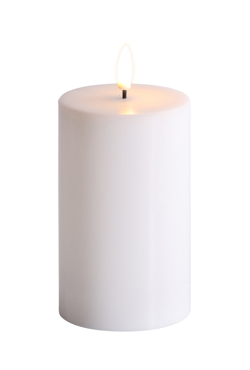 Kubbelys LED hvit 12,5 cm er en stilren detalj som gir lun stemning i hjemmet. Med voksbelagt overflate og naturtro flamme får du følelsen av ekte stearinlys – helt uten sot, røyk eller brannfare.