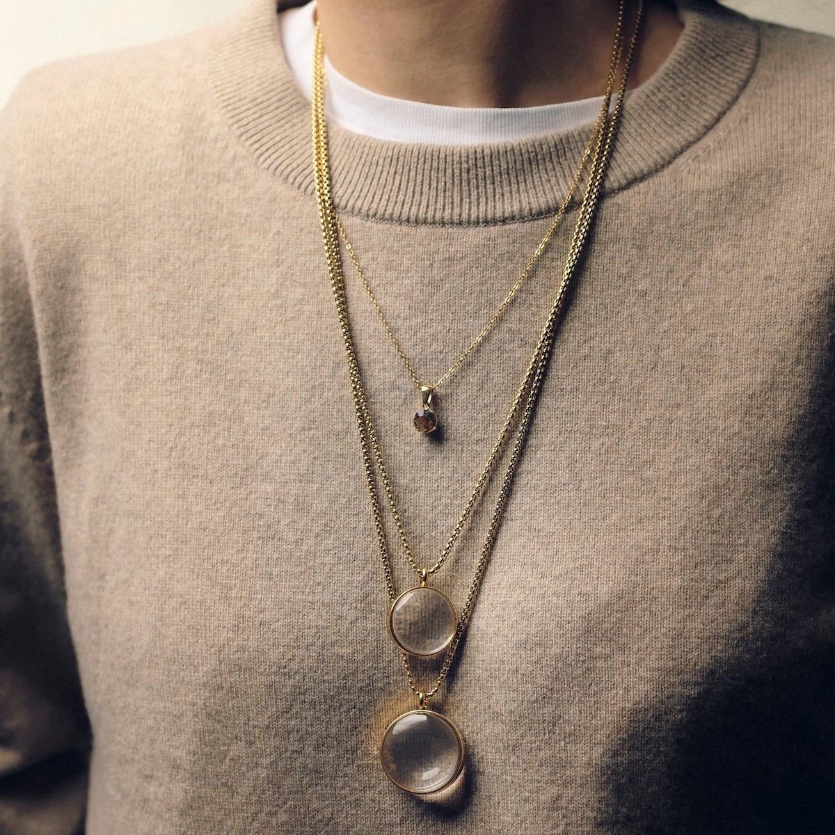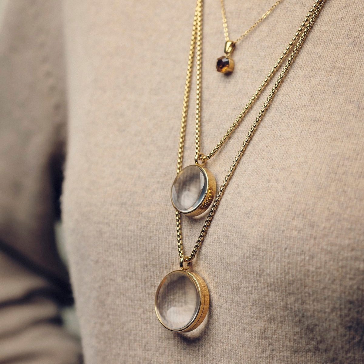 • Materiale: 18K gullbelagt stål og glass