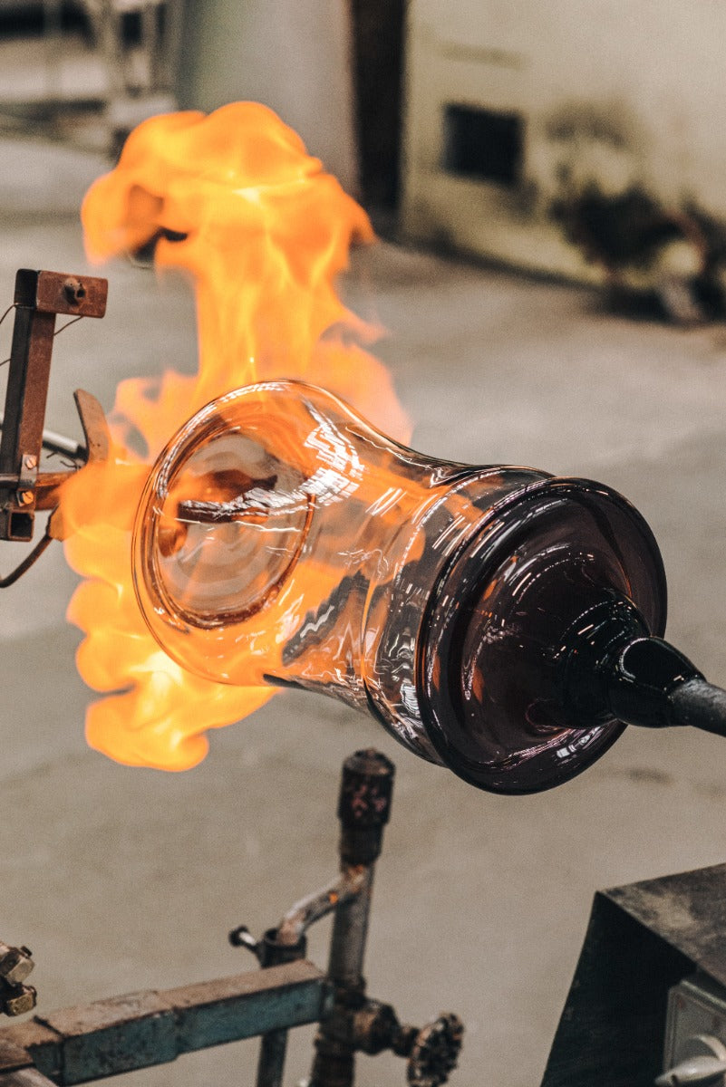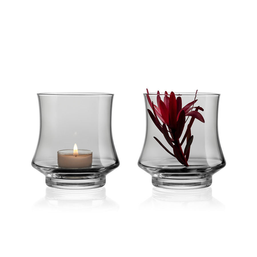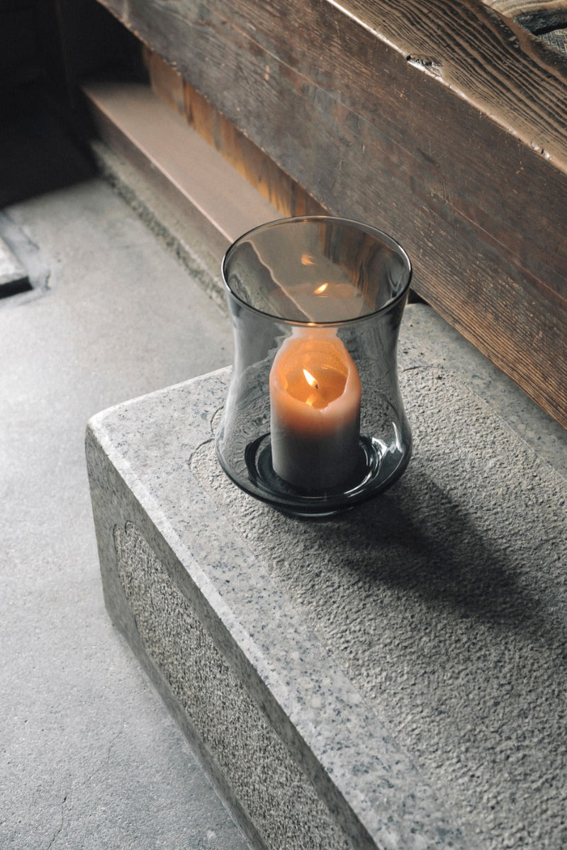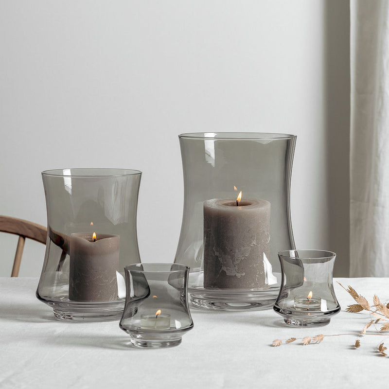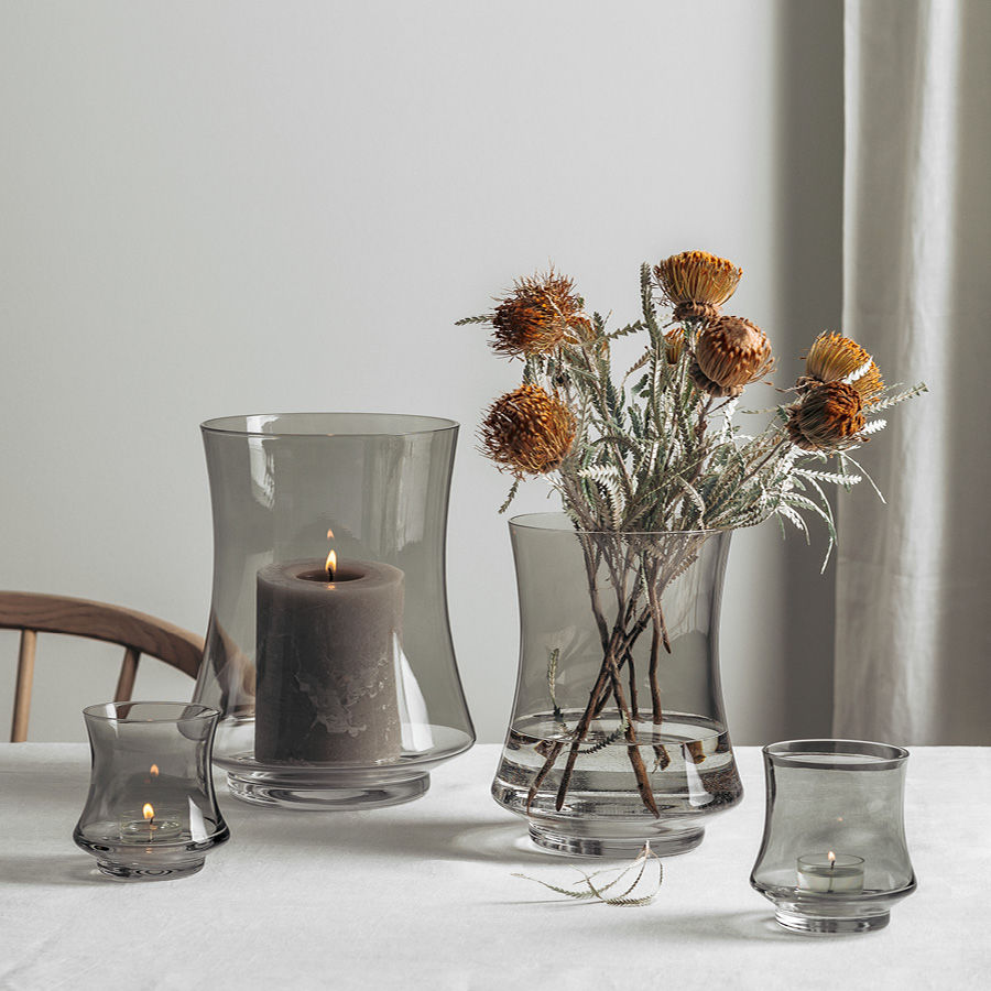 Den myke kurven i glasset gjenspeiler formen på en flamme og fremhever flammens bevegelser og evne til å skape ro.