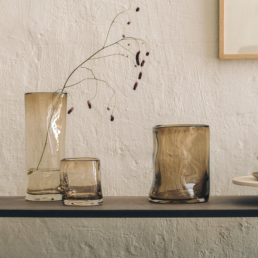 Sine er serie med organiske, unike vaser i tre størrelser. Alle vaser munnblåses av dyktige håndverkere på Hadeland Glassverk.