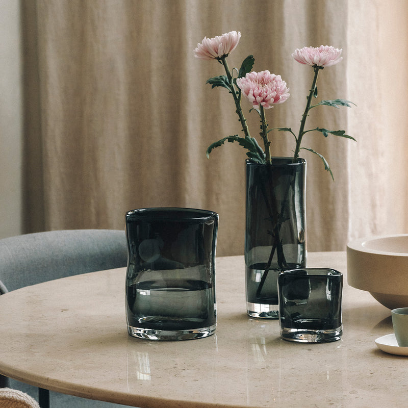 Sine er serie med organiske, unike vaser i tre størrelser. Alle vaser munnblåses av dyktige håndverkere på Hadeland Glassverk.