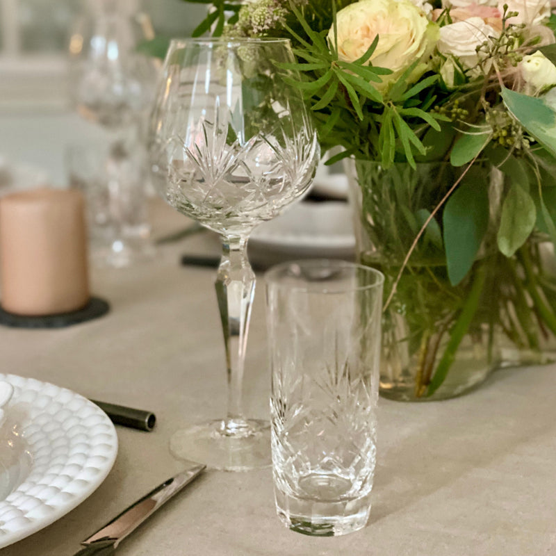 Håndverk og Design: Som en del av det ærverdige Marie-sortimentet, produsert av Hadeland Glassverk siden 1912, viser dette glasset håndverkets finesse gjennom sin munnblåste form og den håndslipte dekoren. Den unike slipedekoren og den delikat utformede stetten understreker Hadeland Glassverks dedikasjon til kvalitet og skjønnhet, og bringer et stykke norsk designhistorie inn i moderne hjem.