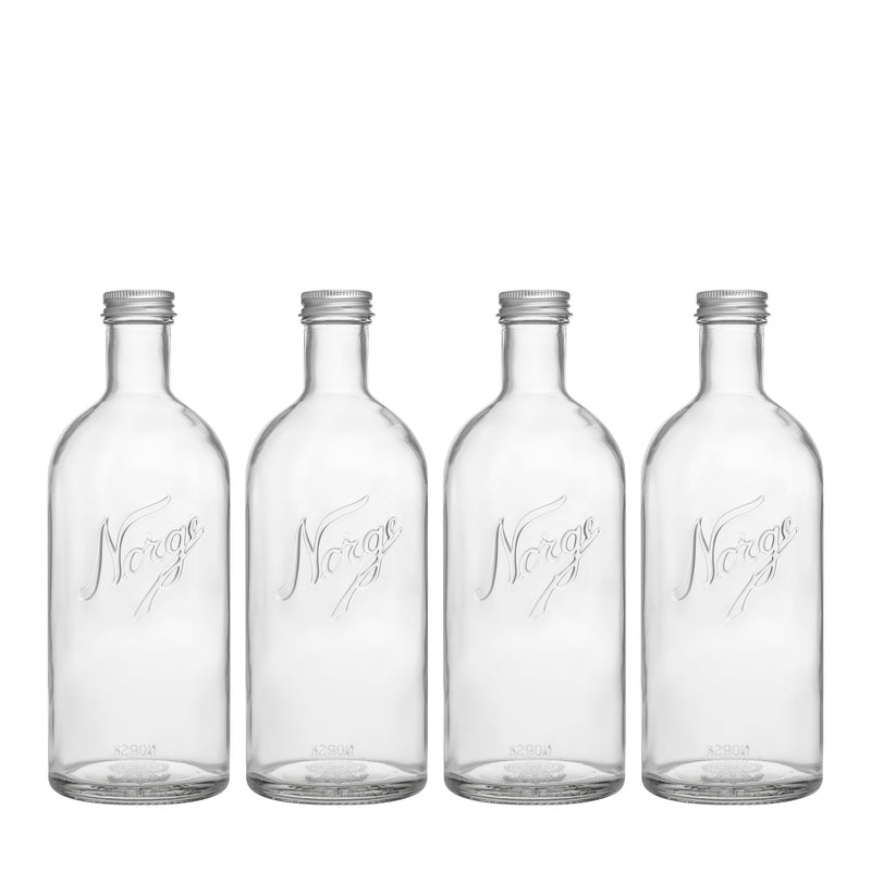 Den originale Norgesflasken 75 cl i 4 pk er ideell til safting og servering. Like fin til hverdagsbruk som til selskap. Leveres med tette skrukorker.