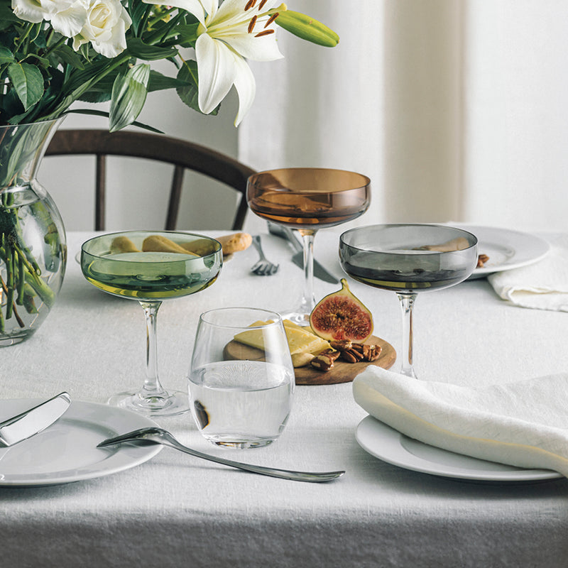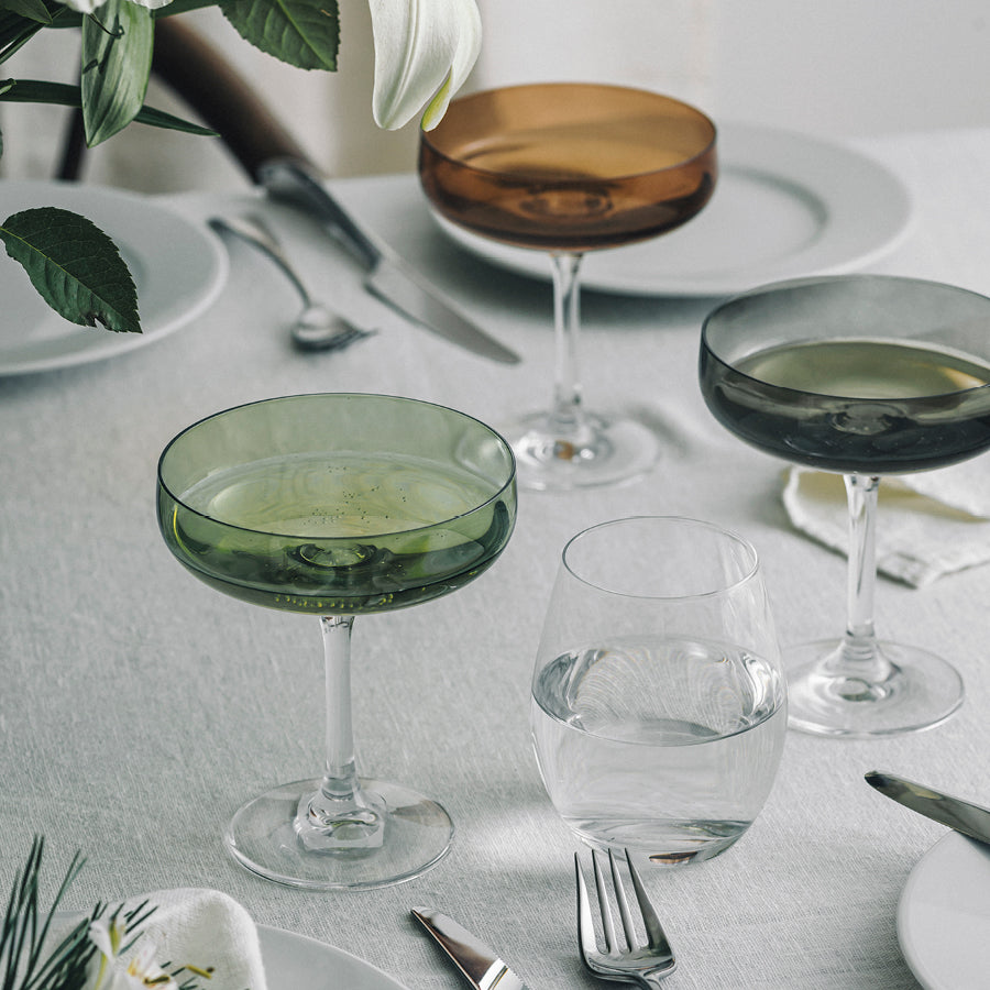 Cavaskålene fra Odyssé er designet med fargerike detaljer og stett i klart glass. Skålenes form er perfekt for perlende viner som cava, prosecco og champagne, men fungerer også utmerket til is og desserter.