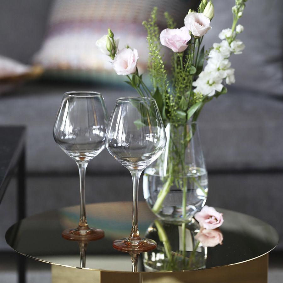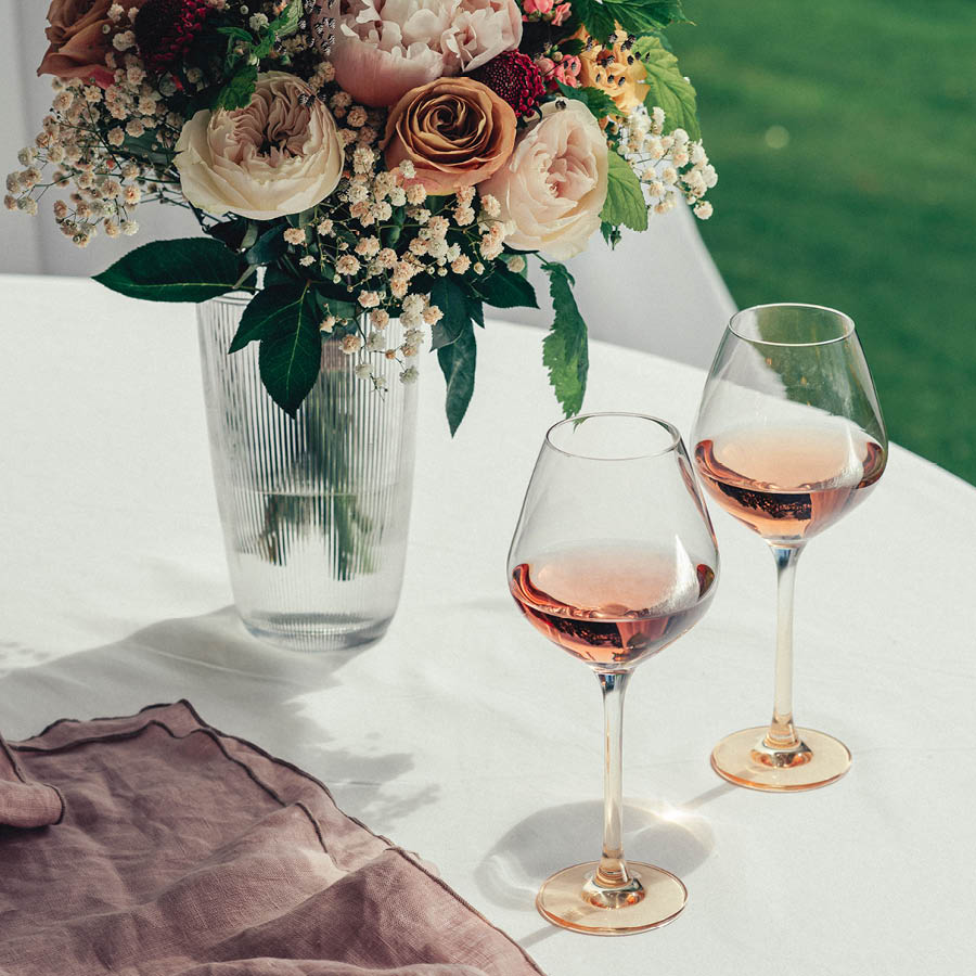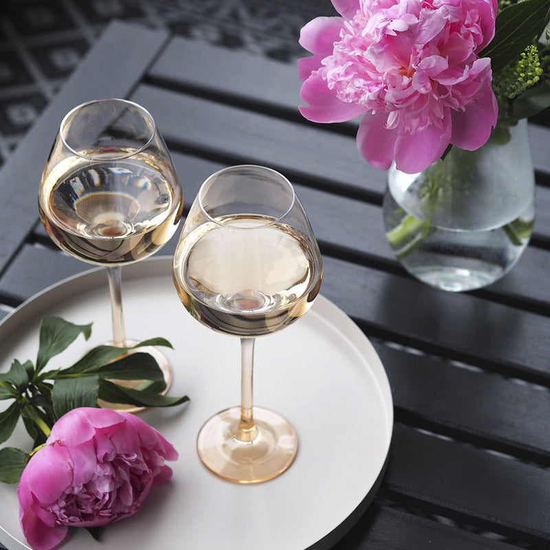 Sommerlig vinglass i Odyssè serien fra Hadeland Glassverk. Den perfekte vertinnegaven til sommerfesten! Fargen på stetten av rosèvinsglassene matcher den lyse, delikate ferskenfargen på mange rosèviner. Perfekt for alle som setter pris på øyeblikkets glede, en varm sommerkveld.