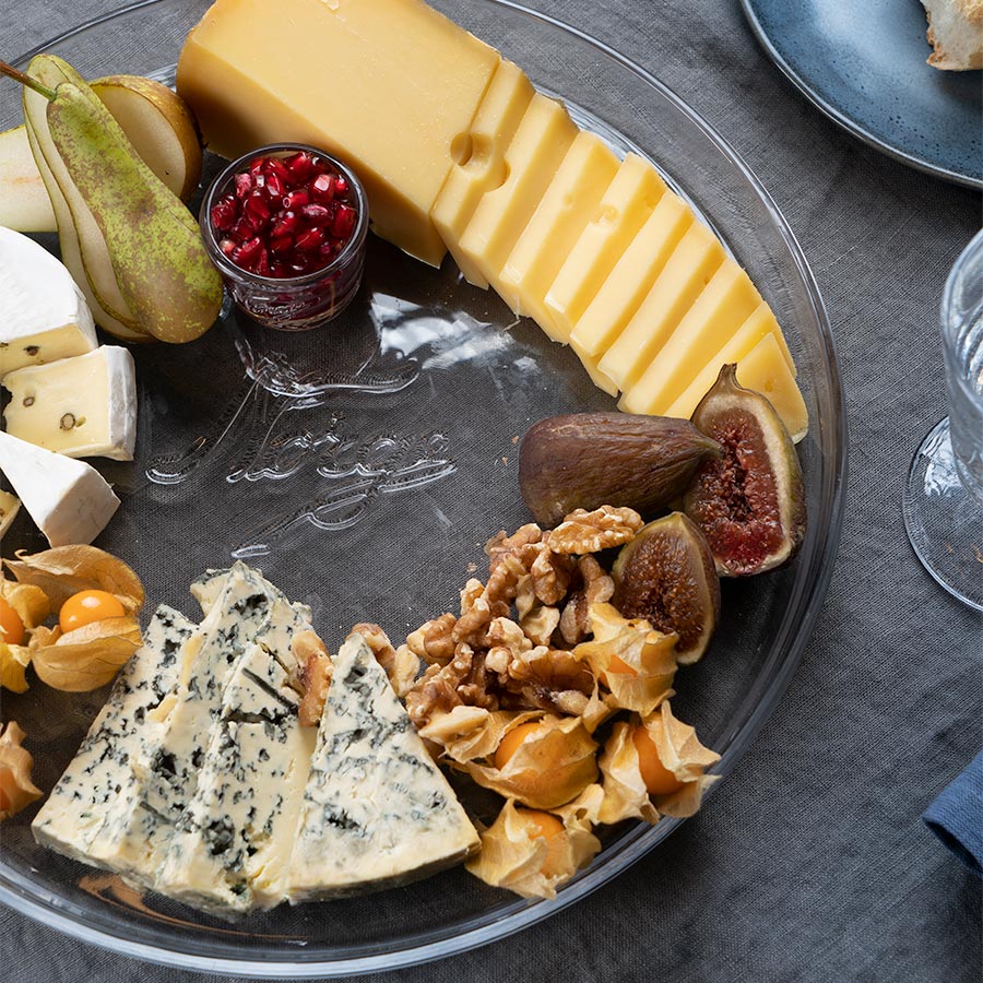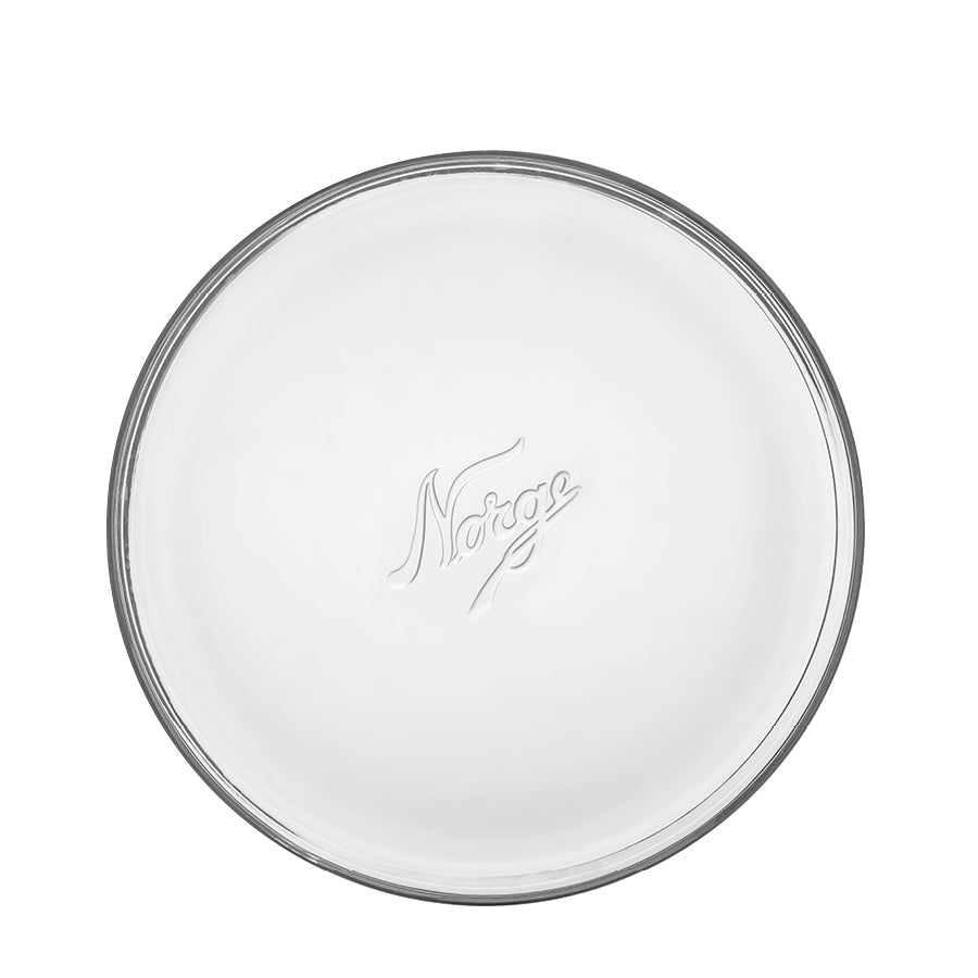 Ett stort glassfat på 32 cm i diameter, med en høy kant på 3 cm. Med den kjente Norgelogoen midt på fatets bunn. Kan brukes til både matserveringer og oppsatser med blomster og pynt.