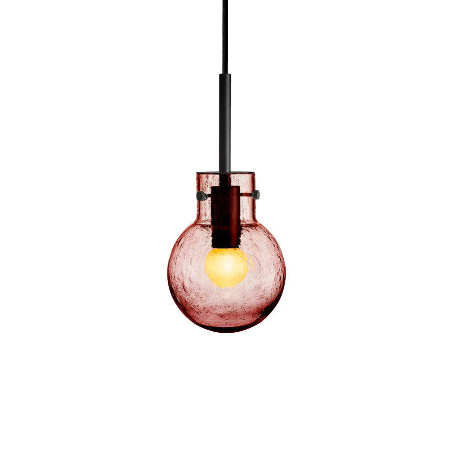 Taklampe Soda Morgenrød er en lampe som kombinerer tradisjonelt glasshåndverk med en lekende og elegant uttrykksform. Soda-teknikken, som ble særlig populær på 1950-tallet, gir glasset sitt karakteristiske boblemønster. Effekten oppstår når glassblåseren drysser mineralpulver på den varme glasskulen før den gjenoppvarmes og blåses ferdig i formen. Under denne prosessen dannes små luftbobler som fanges i glassmassen og skaper et unikt, livlig mønster i hver eneste krystallkule.