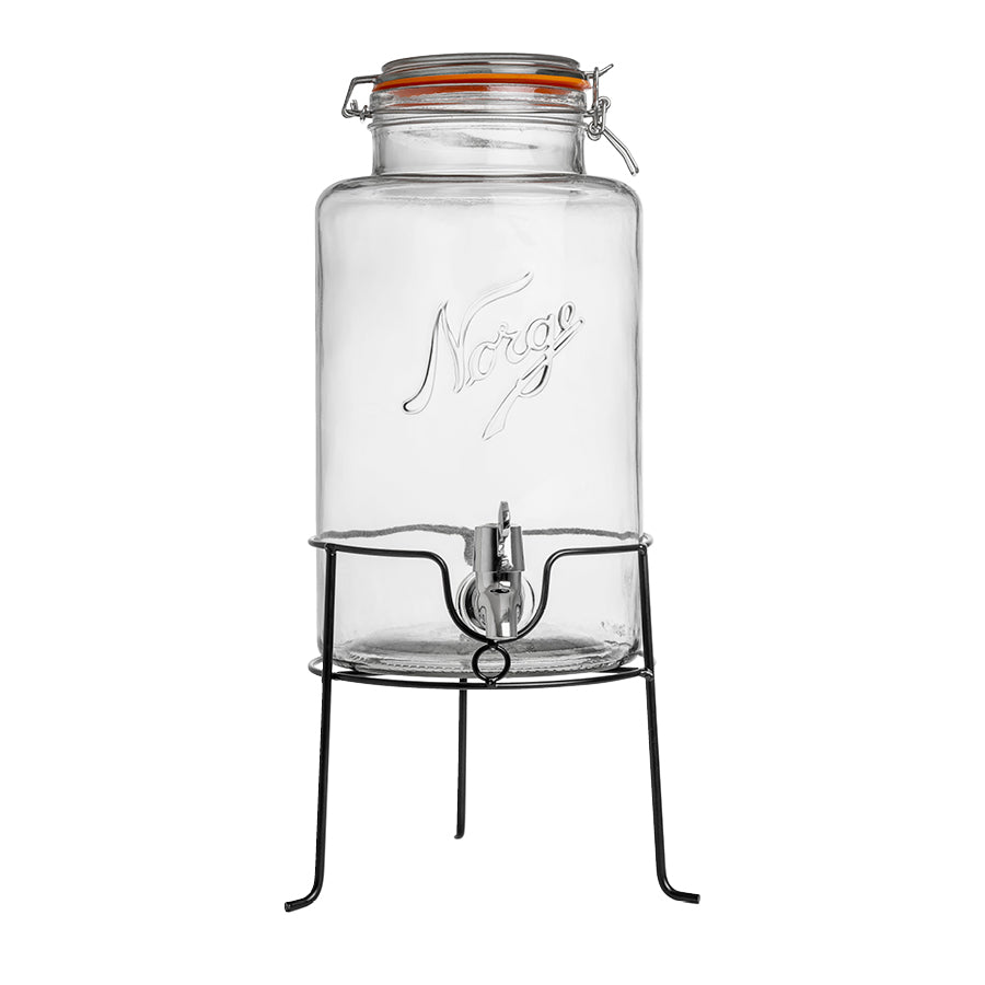 Praktisk og stødig stativ som gjør det lett å tappe drikke fra Norgesglass dispenseren.