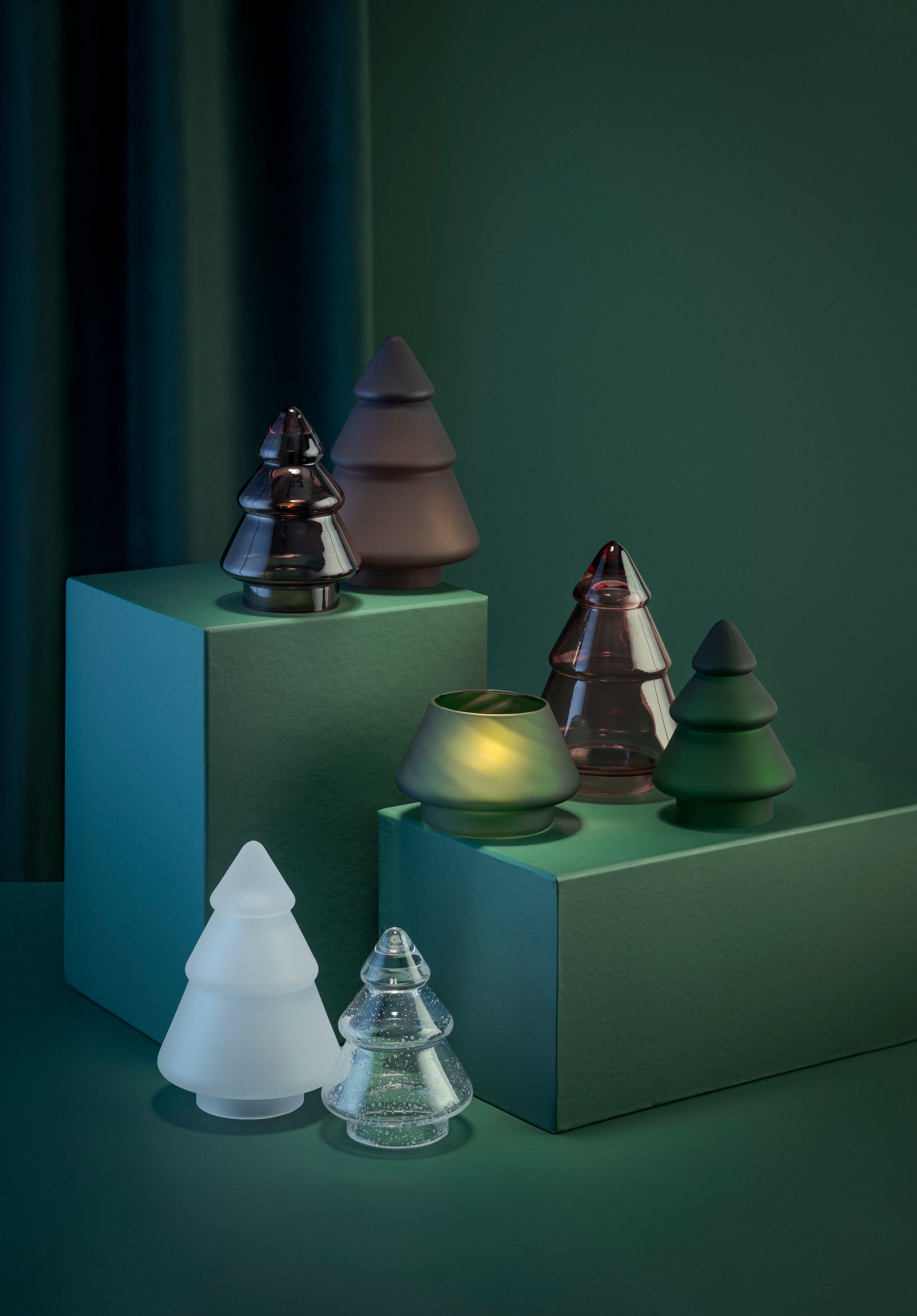 Gran glasstre 12,7 cm i frostet hvitt glass fra Hadeland Glassverk er den største varianten i serien og gir et markant innslag i juledekorasjonen. Den frostede overflaten minner om vinterens snø og reflekterer lyset på en vakker måte når treet brukes med et LED-stearinlys. Med sitt elegante format fungerer det både som et midtpunkt i interiøret og i kombinasjon med de mindre grantrærne. Enkelt vedlikehold ved å tørke forsiktig med en fuktig klut.