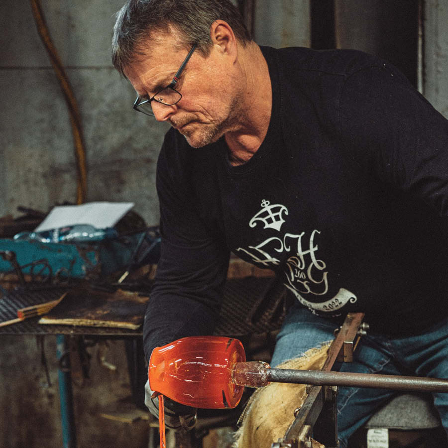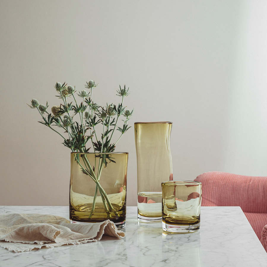 Sine er serie med organiske, unike vaser i tre størrelser. Alle vaser munnblåses av dyktige håndverkere på Hadeland Glassverk.