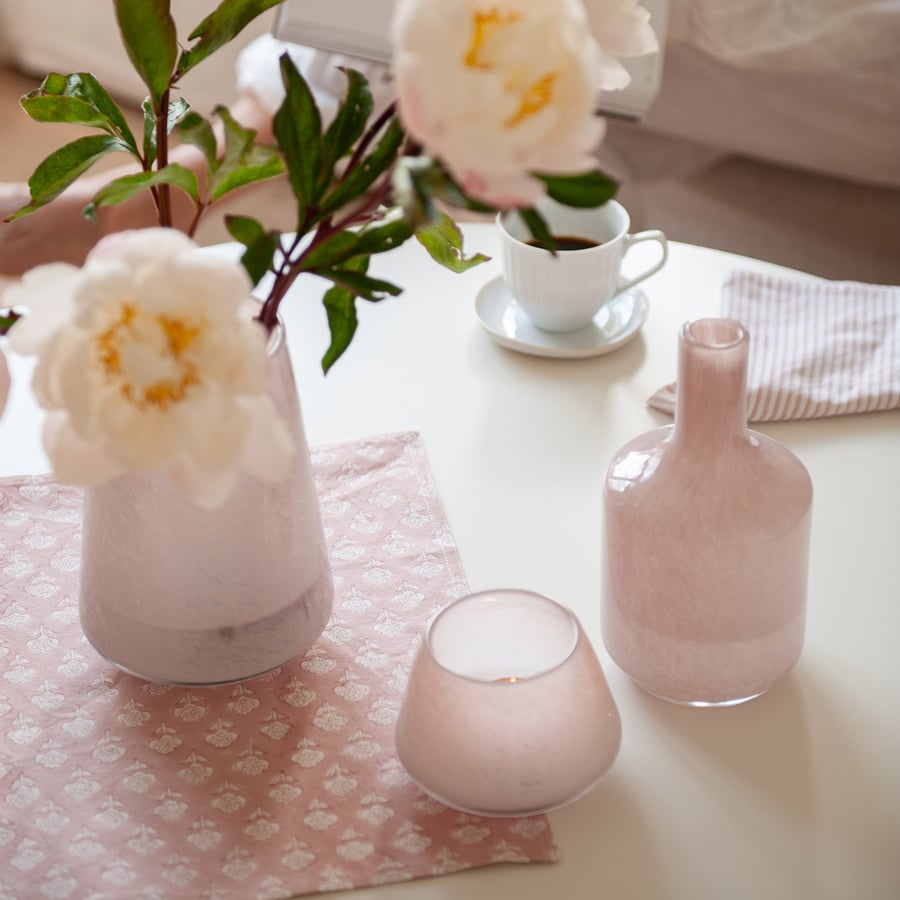 Dugg er en serie munnblåste, multifunksjonelle vaser og telysholdere av gjennomfarget glass. Denne vasen på 20 cm i rosa kombinerer praktisk bruk og skjønnhet på en herlig måte. Munnblåst og laget av gjennomfarget glass, gir den et vakkert fargespill som gjør hver vase unik. Perfekt for blomster eller som en sjarmerende dekorasjon. Husk å plassere den unna direkte sollys for å bevare fargen.