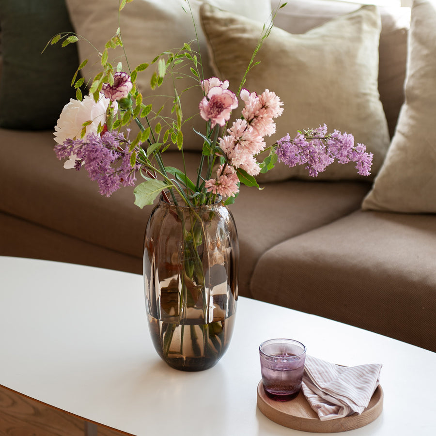 Ella-serien presenterer også lyslykter i kakao-farget glass, som harmonerer naturlig med varmen og roen i hjemlige omgivelser. Disse lyslyktene er preget av en dyp og rik tone som fremhever den subtile elegansen i ethvert rom. Med sin unike optikk i glasset, skaper de et stemningsfullt og innbydende lysspill.