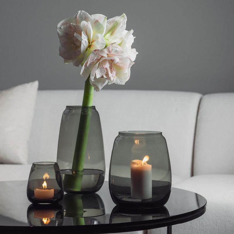Siccorivasene har myke former, og finnes i tre størrelser. De ivaretar ulike type blomster og buketters behov. Vasene er fine sammen i gruppe, men fungerer også godt alene. Siccorivasene er vakre til rause tulipanbuketter, rosebuketter, en enkelt gren eller til nyplukkede markblomster. De finnes både i klart glass og i farger.