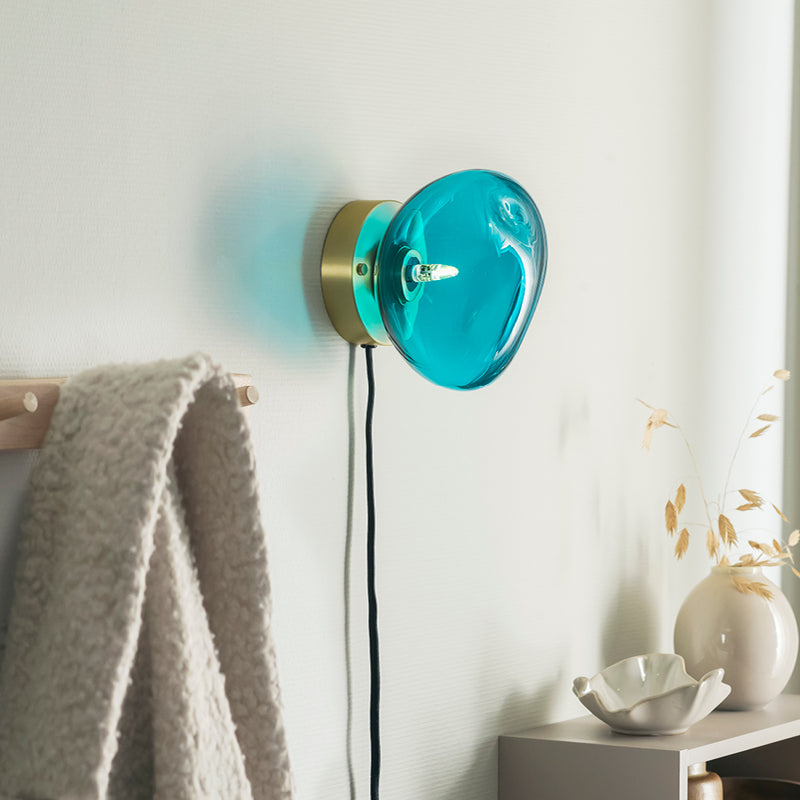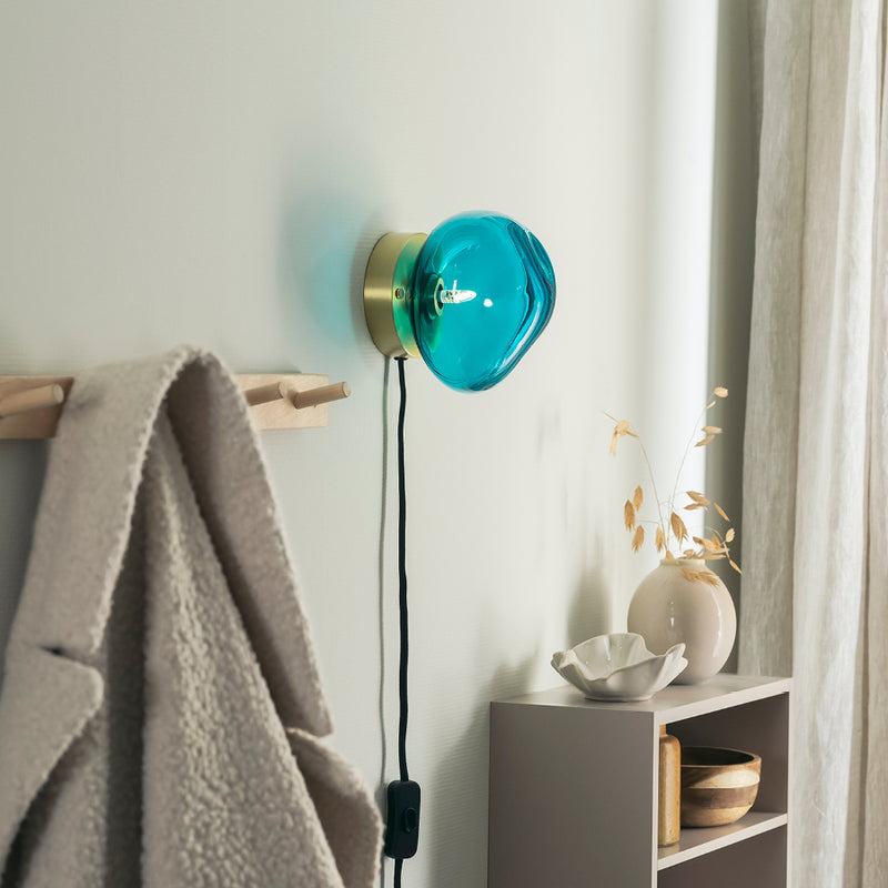 VEGGLAMPE BLÅGRØNN MED UTVENDIG MESSING OPPHENG