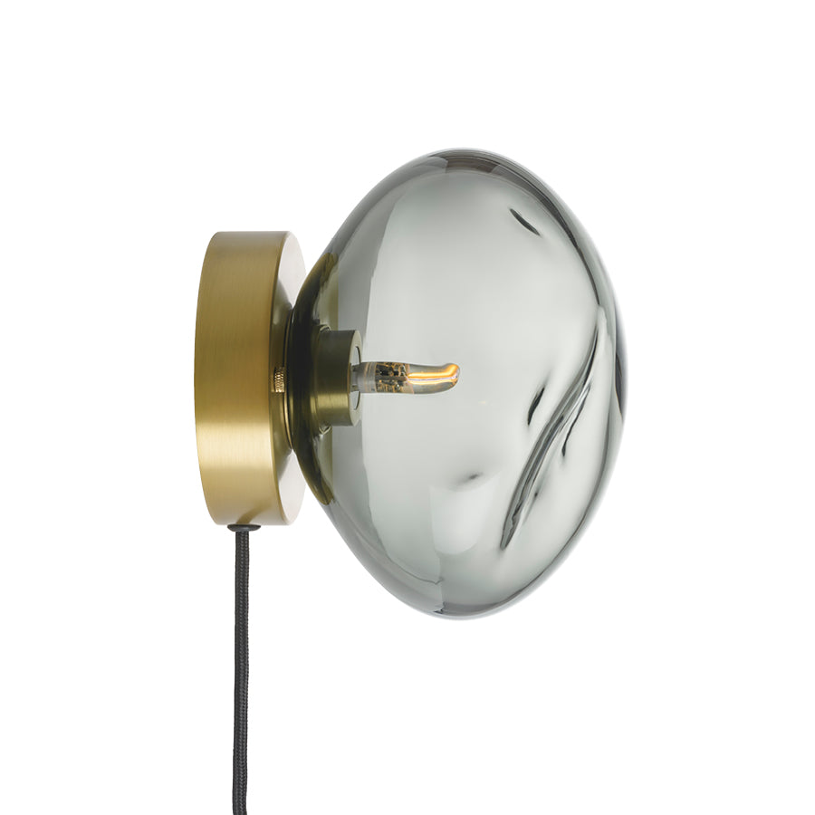 VEGGLAMPE LYS RØKGRÅ MED UTVENDIG MESSING OPPHENG