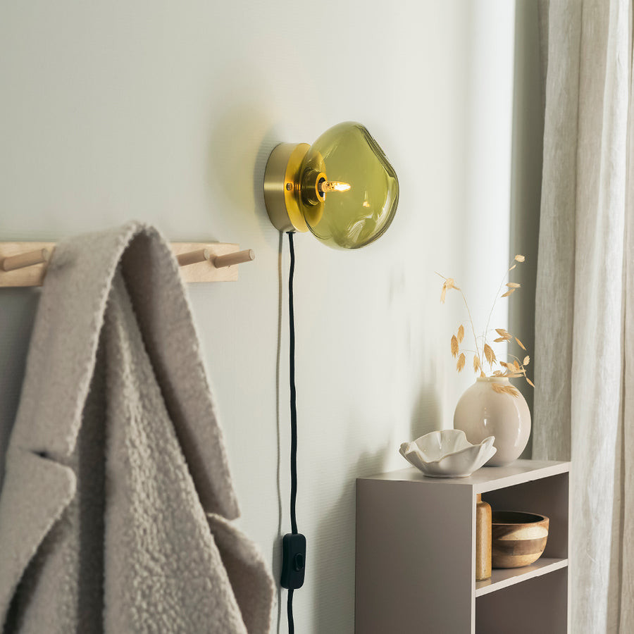 VEGGLAMPE OLIVEN MED INNFELDT MESSING OPPHENG