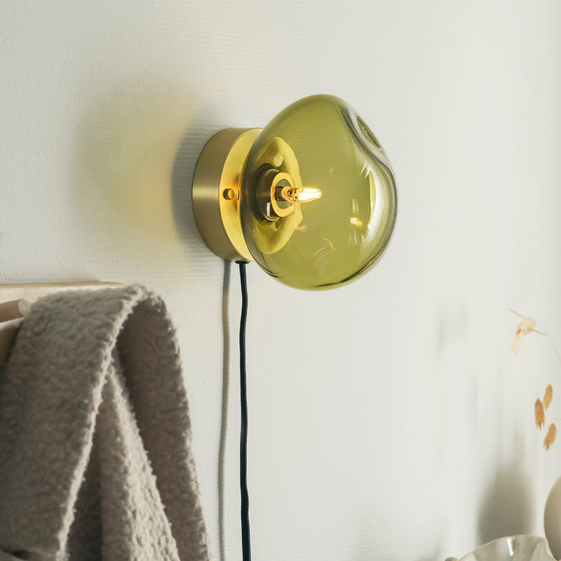 VEGGLAMPE OLIVEN MED UTVENDIG MESSING OPPHENG