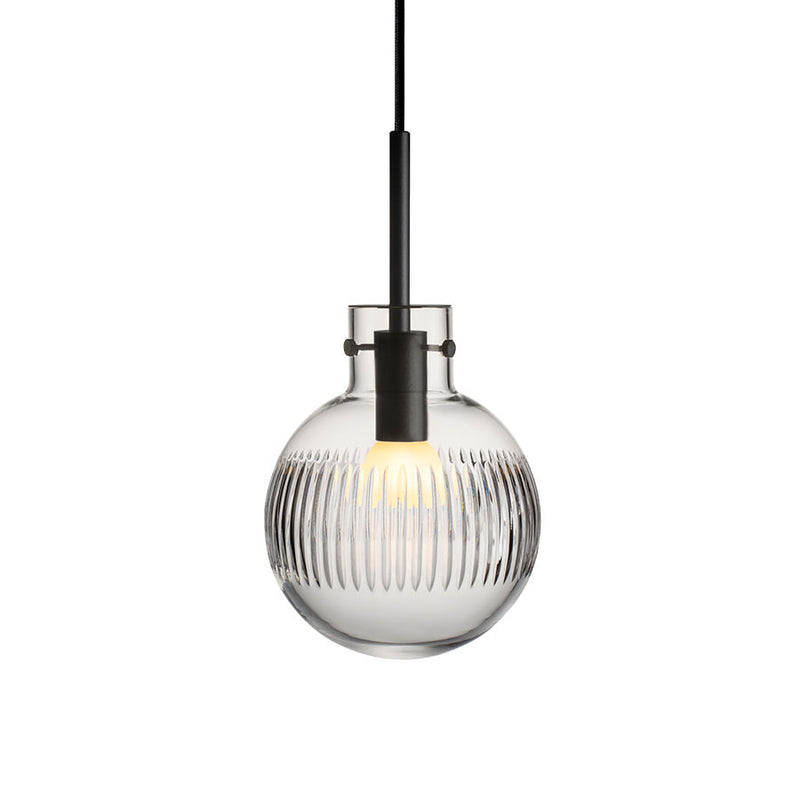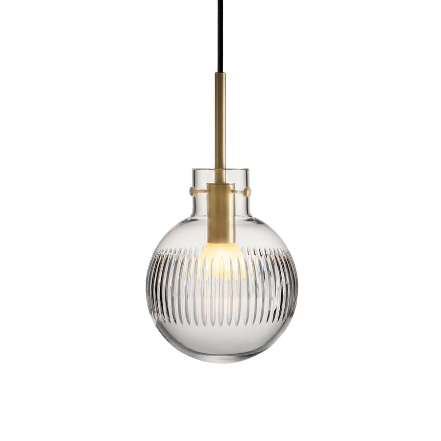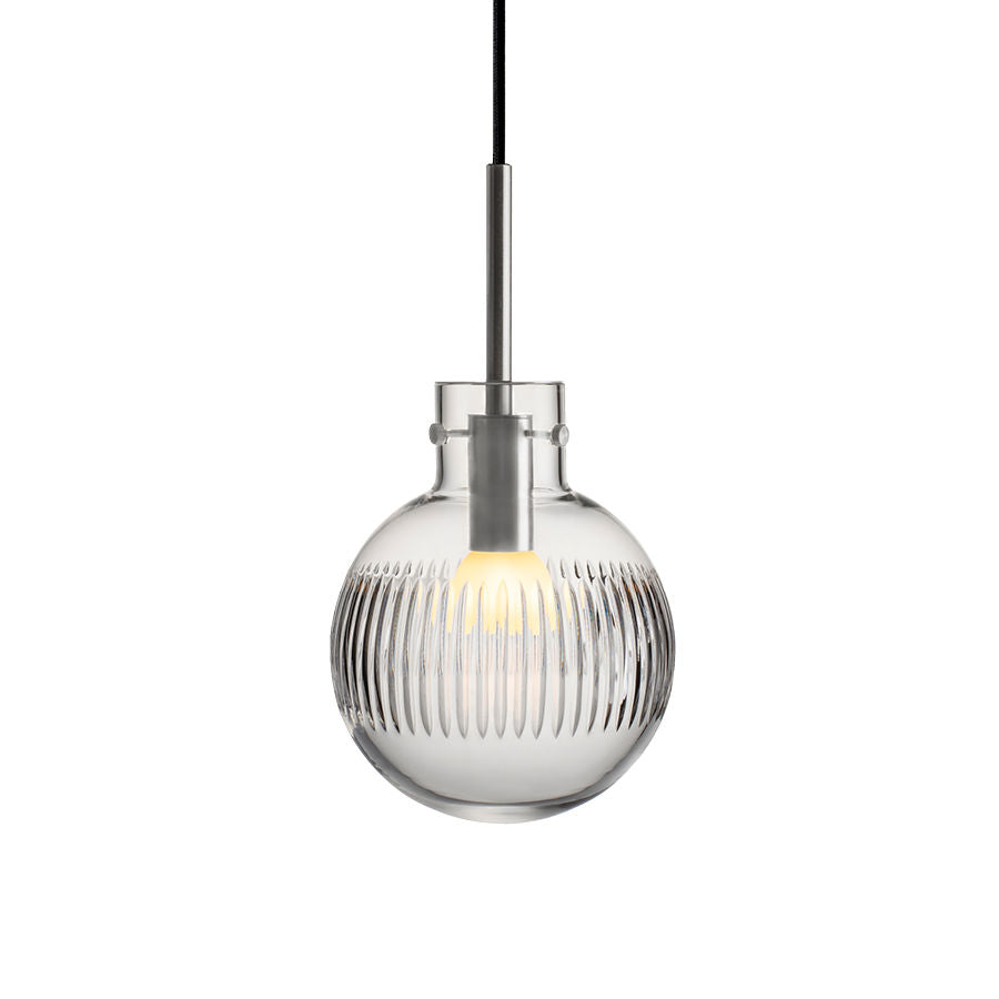Basen for skjær-mønsteret er en helt glatt krystallkule, og det lekre, vertikale skjær-mønsteret slipes for hånd tvers over hele kulen.